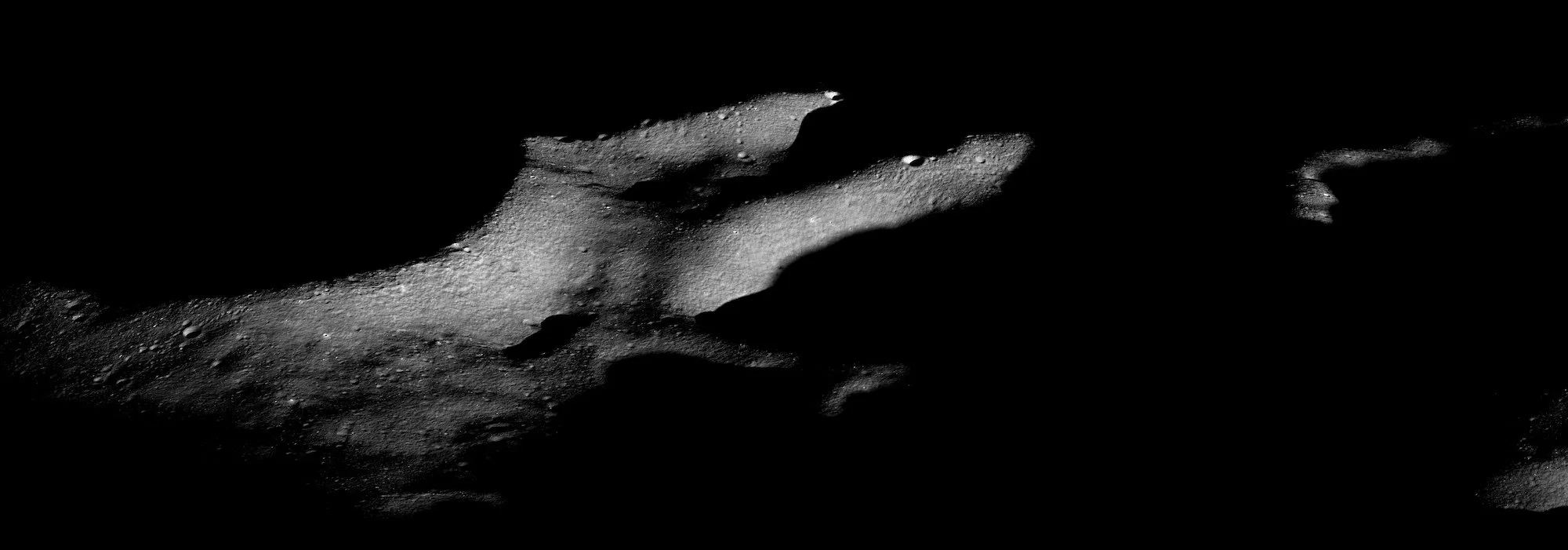 Closeup of, the South Massif at the Apollo 17 landing site. A “massif” being a small compact group of mountains.