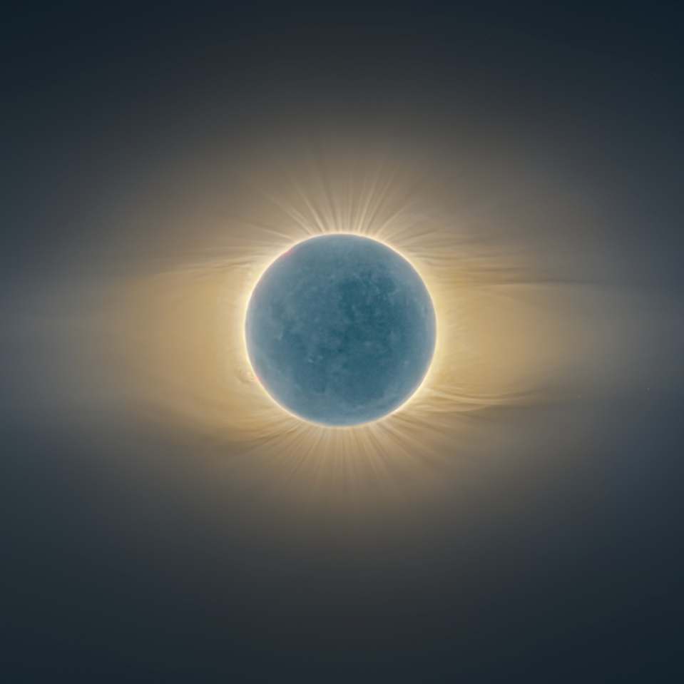 The only time a true New Moon can be seen is during a solar-eclipse. While the front of moon is “new” bathed in nothing but the cool blue light reflected off the full earth, the backside of the moon has its own glories.